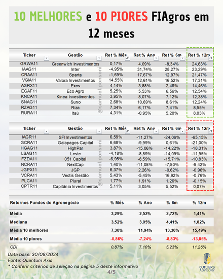 MELHORES E PIORES FIAGROS EM AGOSTO 2024