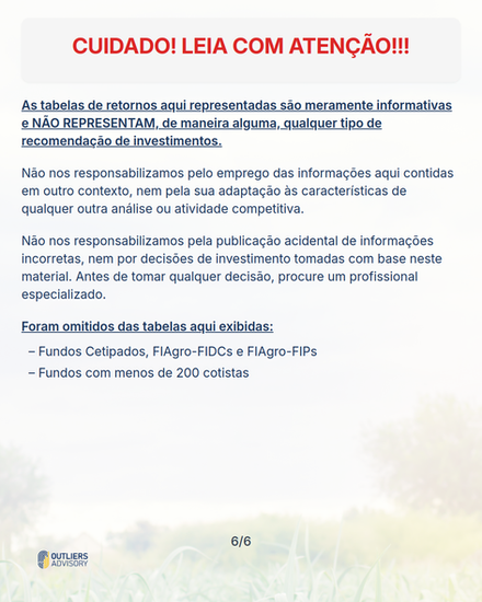 *Na lista de fundos que acompanhamos, foram omitidos: Fundos Cetipados, FIAgro-FIDCs e FIAgro-FIPs / Fundos com menos de 200 cotistas