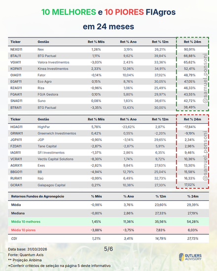 MELHORES E PIORES FIAGROS EM MARÇO 2026