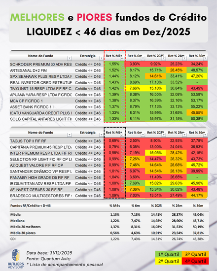 MELHORES E PIORES FUNDOS DE CRÉDITO EM 2025 (Prazo inferior a 46 dias)