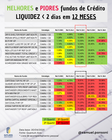 Como se comportaram os fundos de Crédito "mais líquidos" em abril de 2025?