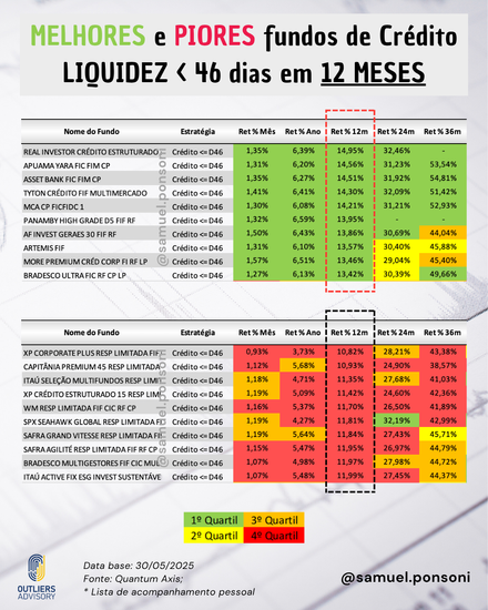 MELHORES E PIORES FUNDOS DE CRÉDITO EM MAIO 2025 (Prazo inferior a 46 dias)