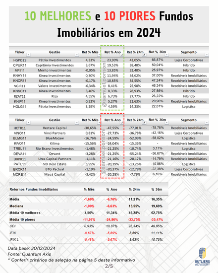 MELHORES E PIORES FUNDOS IMOBILIÁRIOS EM 2024
