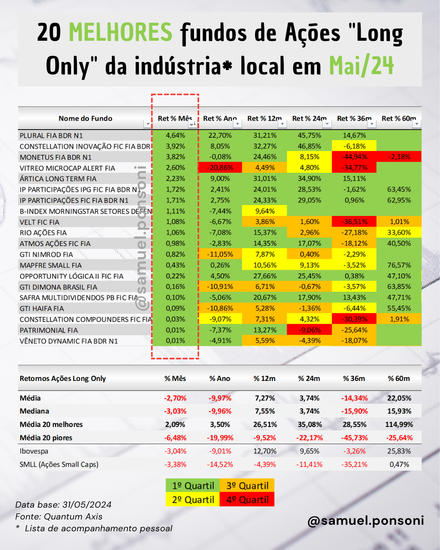 MELHORES E PIORES FUNDOS LONG ONLY EM MAIO 2024