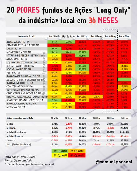 MELHORES E PIORES FUNDOS LONG ONLY EM MARÇO 2024