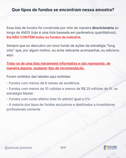 -Para a análise de fundos de Ações, recomenda-se olhar retornos de, PELO MENOS, 3 a 5 ANOS. Fora isso, é extremamente importante se atentar a todos os aspectos qualitativos do fundo e conhecer bem a gestora responsável pela estratégia do produto