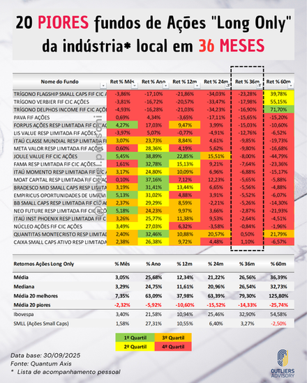 MELHORES E PIORES FUNDOS LONG ONLY EM SETEMBRO 2025