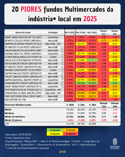 MELHORES E PIORES FUNDOS MULTIMERCADOS EM 2025