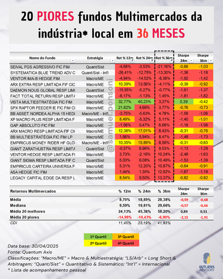 MELHORES E PIORES FUNDOS MULTIMERCADOS EM ABRIL 2025