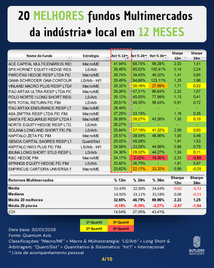 MELHORES E PIORES FUNDOS MULTIMERCADOS EM JANEIRO 2026